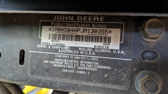 | Title | 2018 JOHN DEERE X584 |