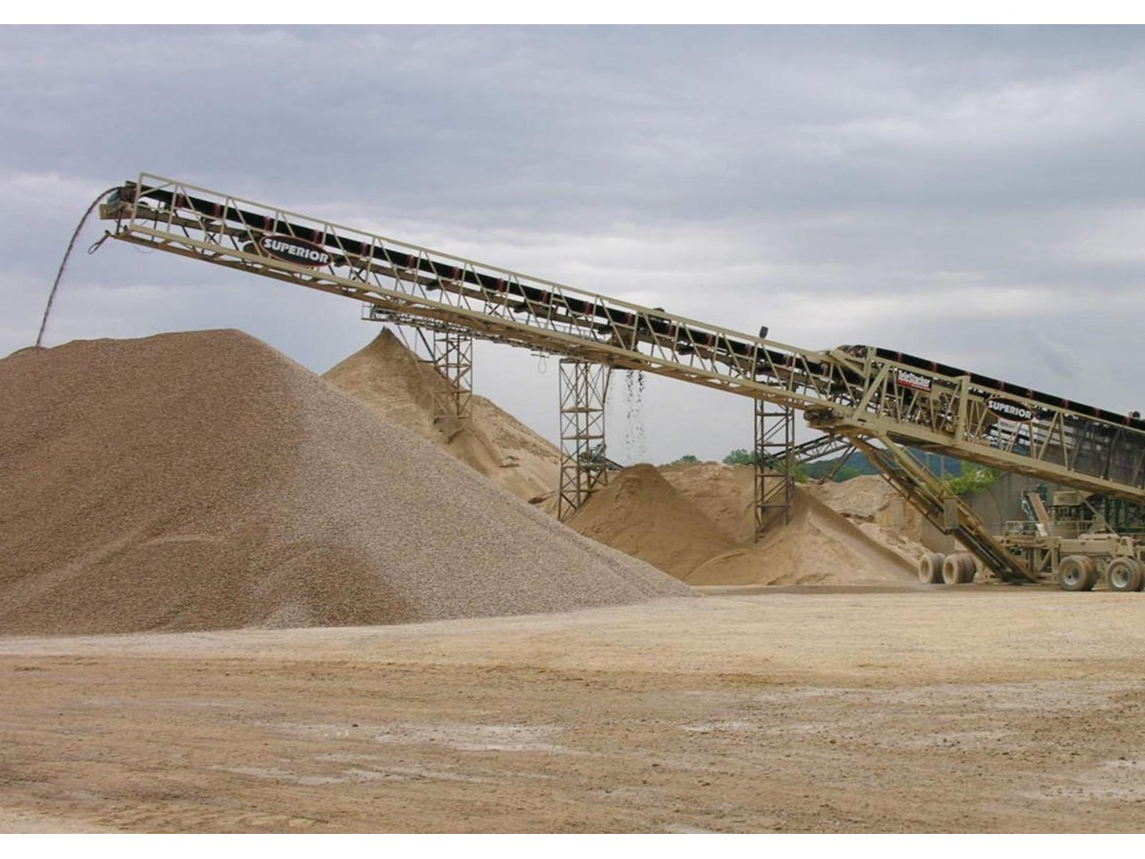 Long known as the "King of the Stockpile," Superior's world famous radial telescopic conveyor is a material handler's most effective weapon against costly stockpile segregation. Its variable height, length, and axle positions allow for layered stockpile construction, which is key to achieving partially and fully desegregated piles.