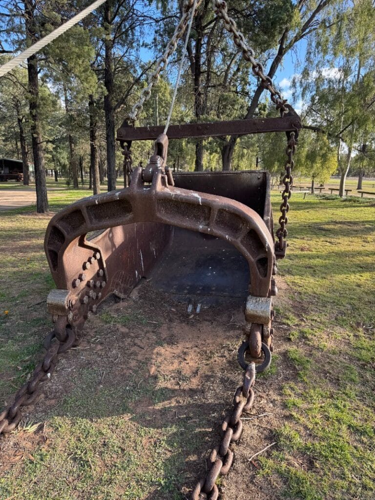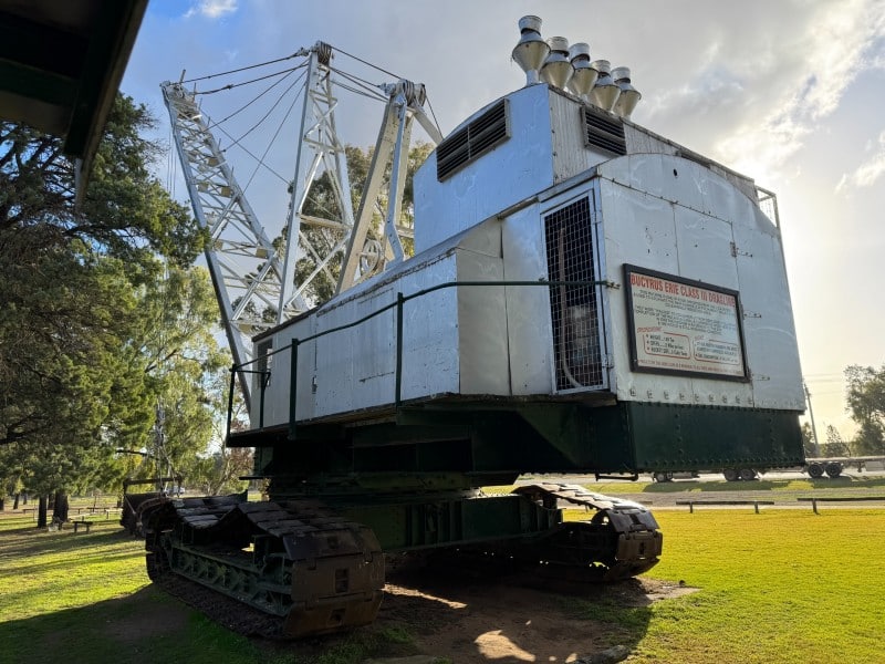 Now located in the Lions’ Park in the small town of Coleambally, a Bucyrus-Erie dragline excavator stands tall – one of four dragline excavators that were imported from the USA between 1935 and 1937 to excavate irrigation channels in the Murray Valley and Coleambally Irrigation Area. Each machine cost around $90,000.