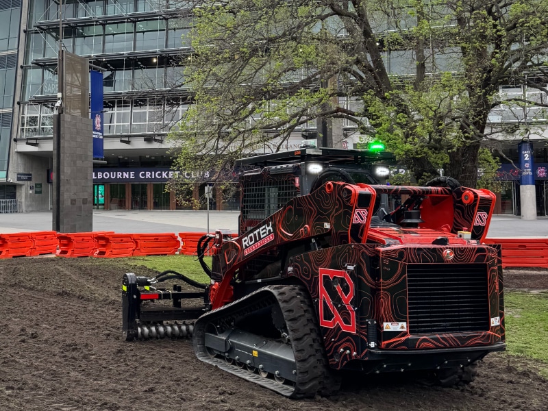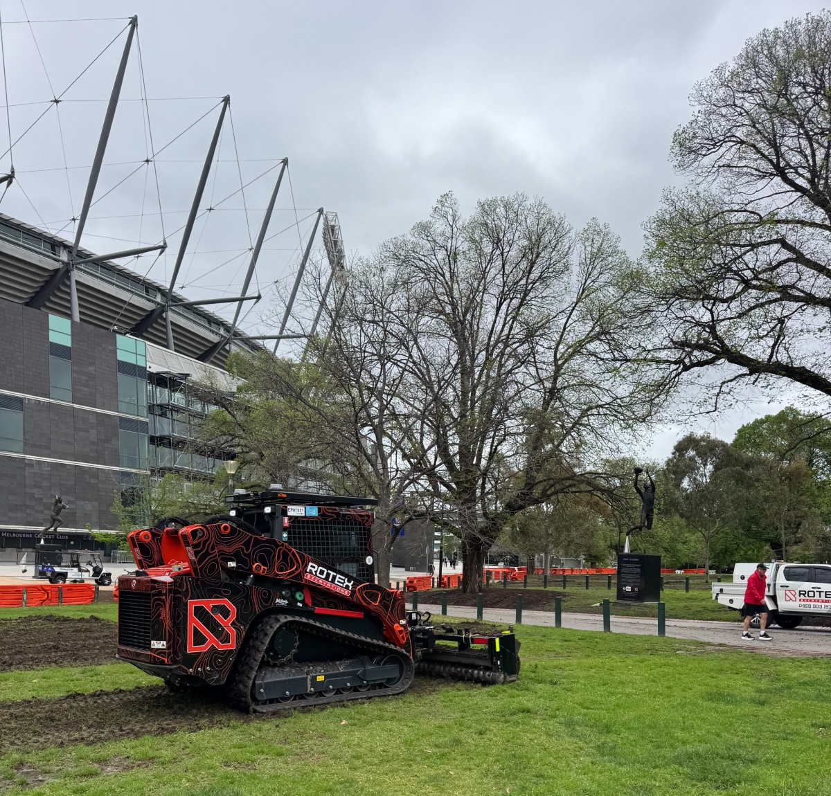 Rotex Excavations owner and director Grant Blashki is just one example of this, having been contracted by Programmed Property Maintenance to rejuvenate the outside grounds of the MCG in preparation for AC/DC’s ‘Power Up’ Tour, which was held in mid-November last year.