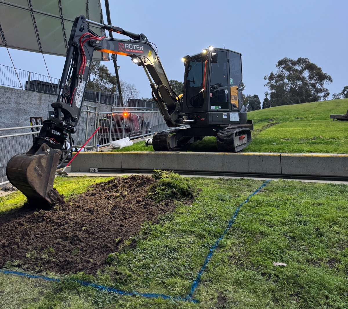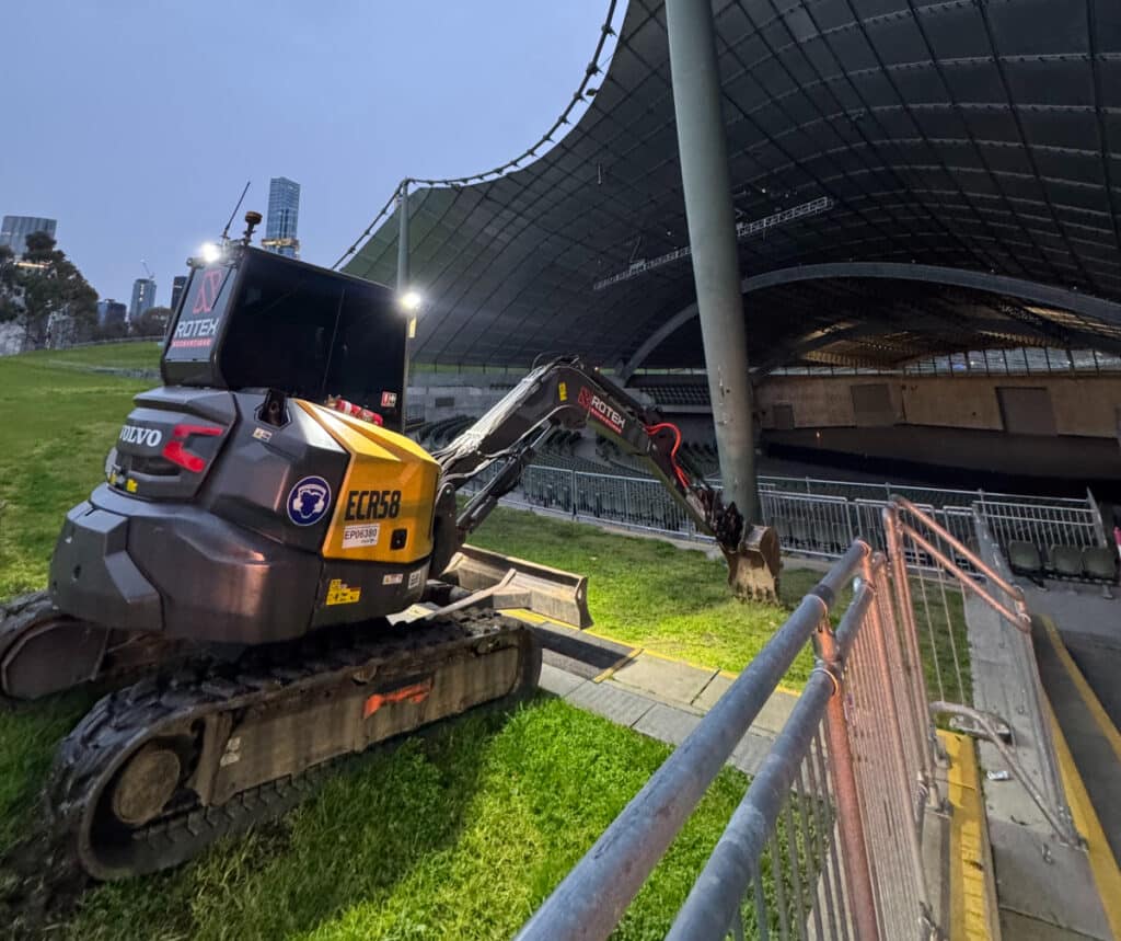 Rotex Excavations has recently deployed its earthmoving equipment at the Melbourne Cricket Ground and the Sidney Myer Music Bowl in preparation for major concerts